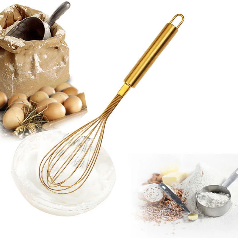 Венчик ручной для взбивания яиц из нержавеющей стали золотистого цвета, 1 шт.