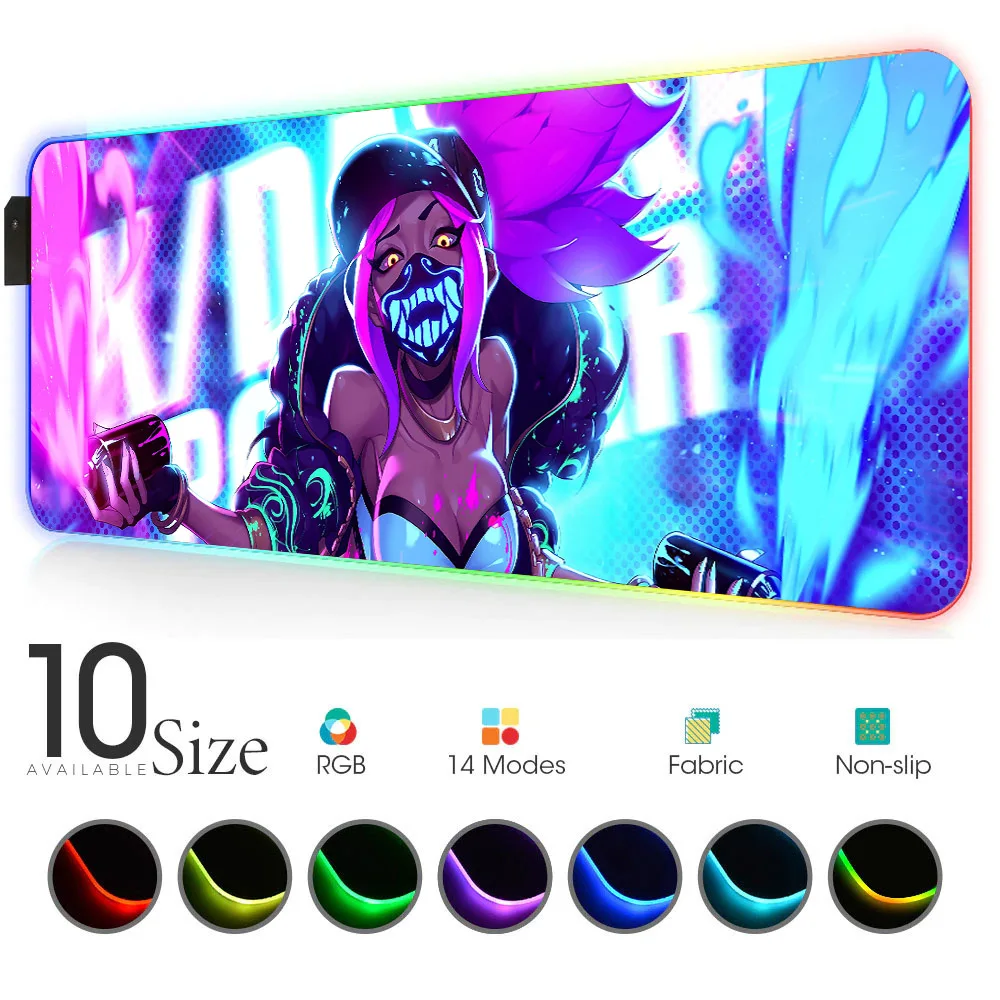 Коврик для мыши игровой, с Rgb-подсветкой, сексуальный коврик для мыши Akali, для ноутбука, со светодиодной подсветкой, для клавиатуры, USB-аксессуаров, коврик для мыши