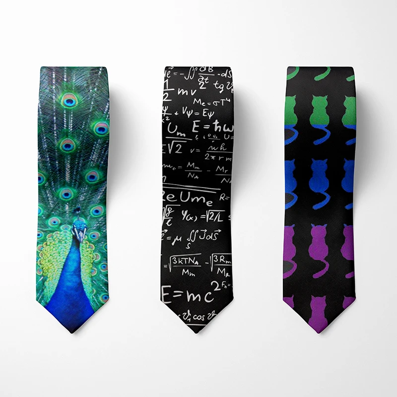 Галстук мужской с математическим символом, дизайнерский галстук с забавным принтом животного, павлина, из полиэстера, деловой повседневный, для вечеринки, аксессуары для рубашек