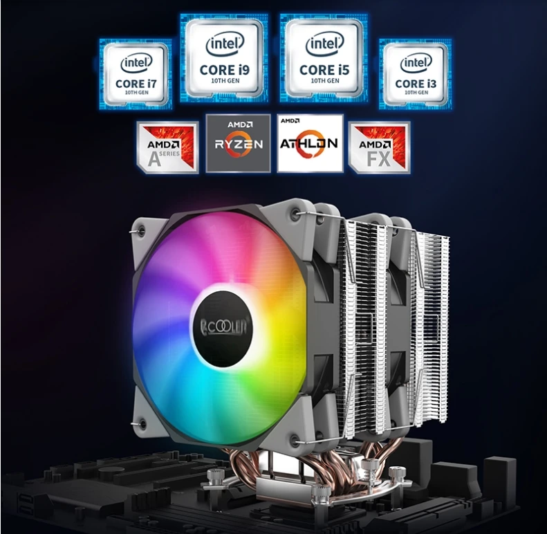 Кулер для процессора с RGB-подсветкой и термопастой, устройство для охлаждения ЦП с 6 тепловыми трубками, подходит для IntelAMD AM4 PWM, отличный радиатор для игрового процессора