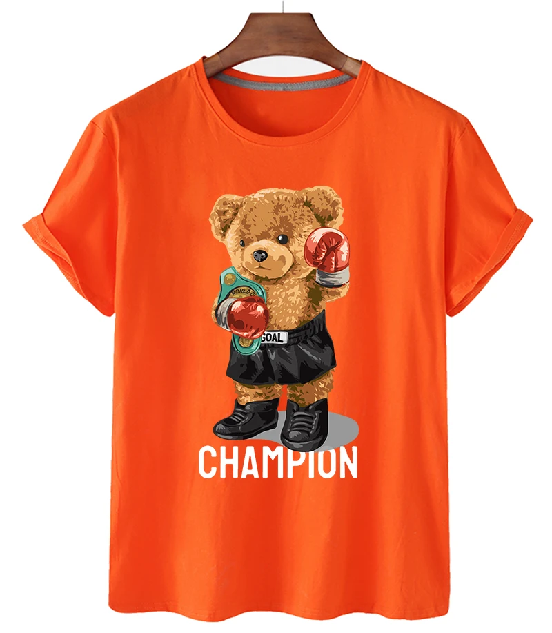 Модная летняя футболка, трендовые забавные красивые боксеры с медведем, Повседневная футболка большого размера с коротким рукавом, топ для мужчин и женщин, популярный логотип