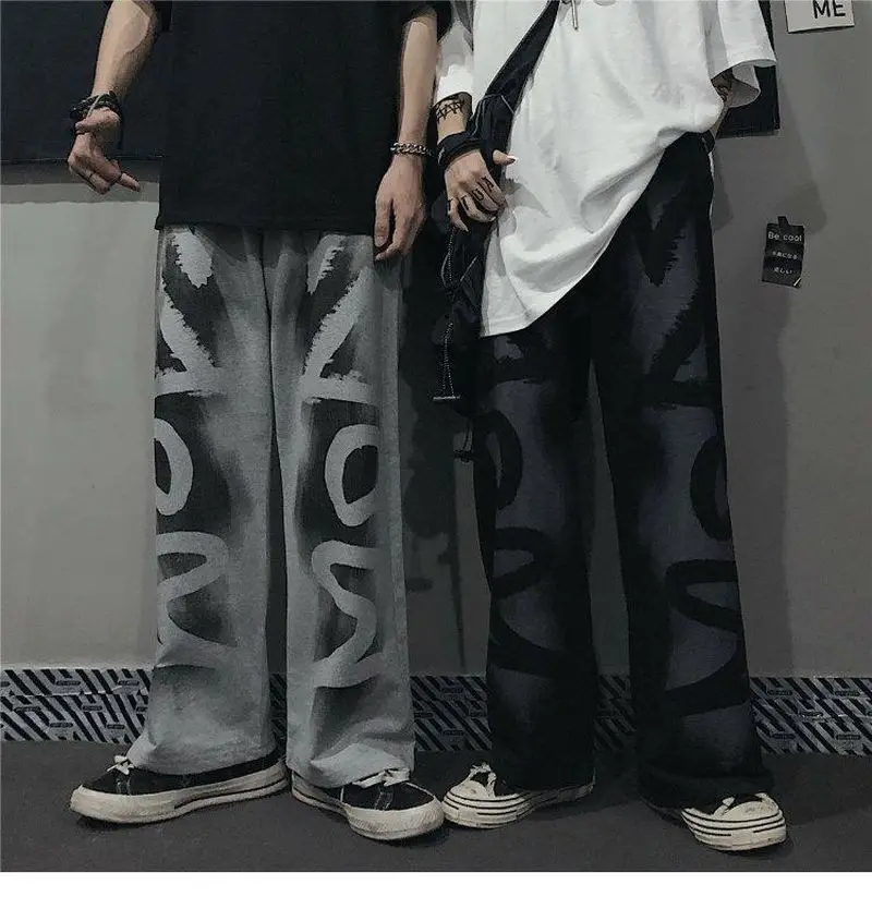 Джинсы мужские свободные с буквенным принтом, уличная одежда в амер...