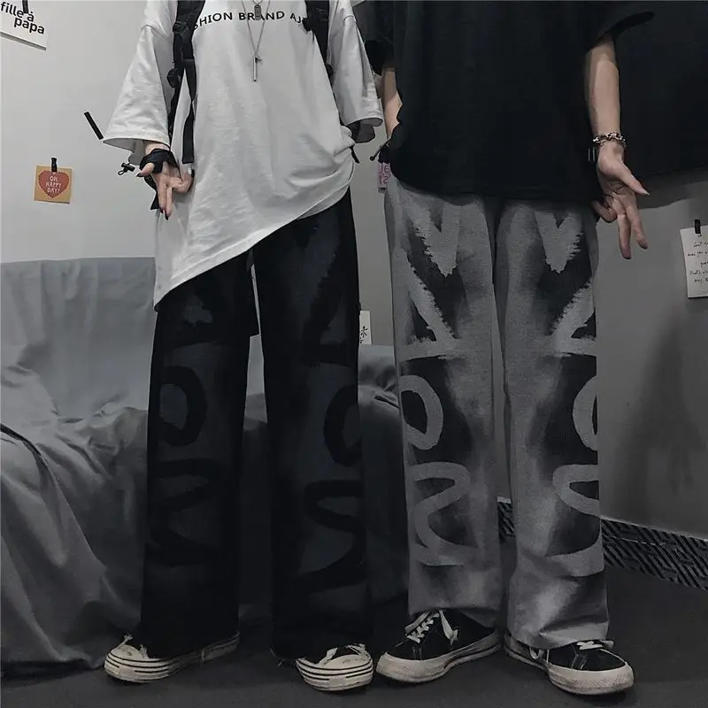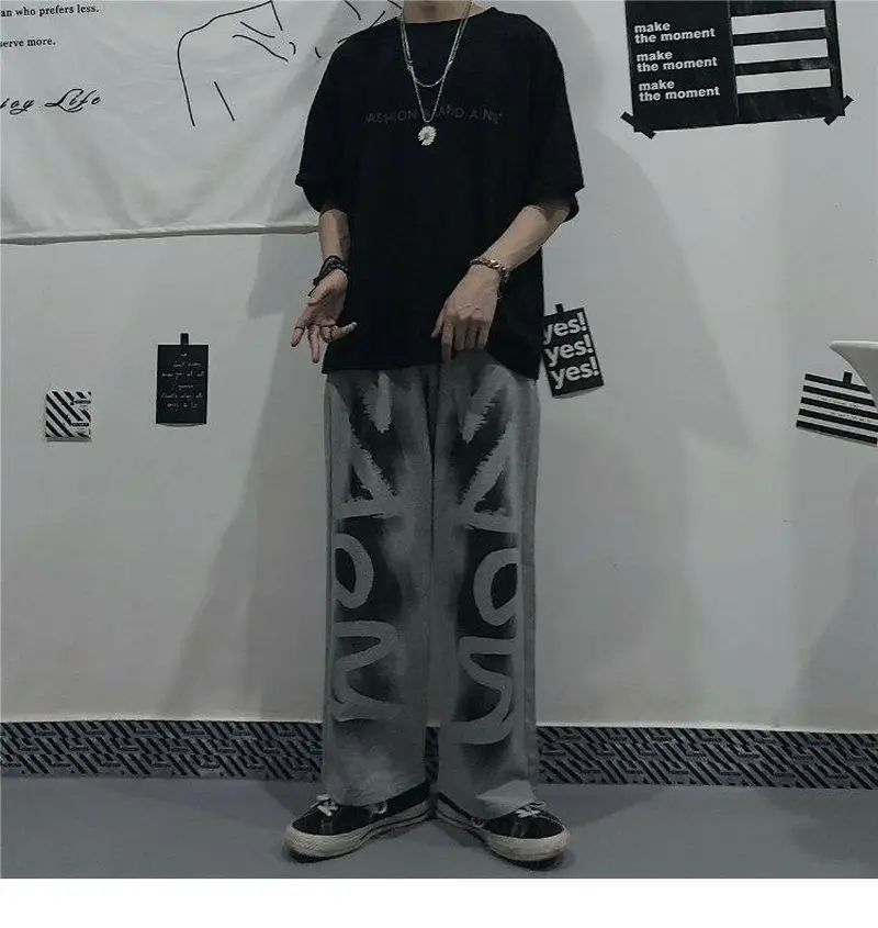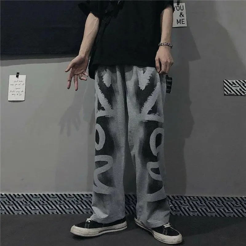 Брюки мужские, широкие, с принтом в японском стиле граффити, для ма...
