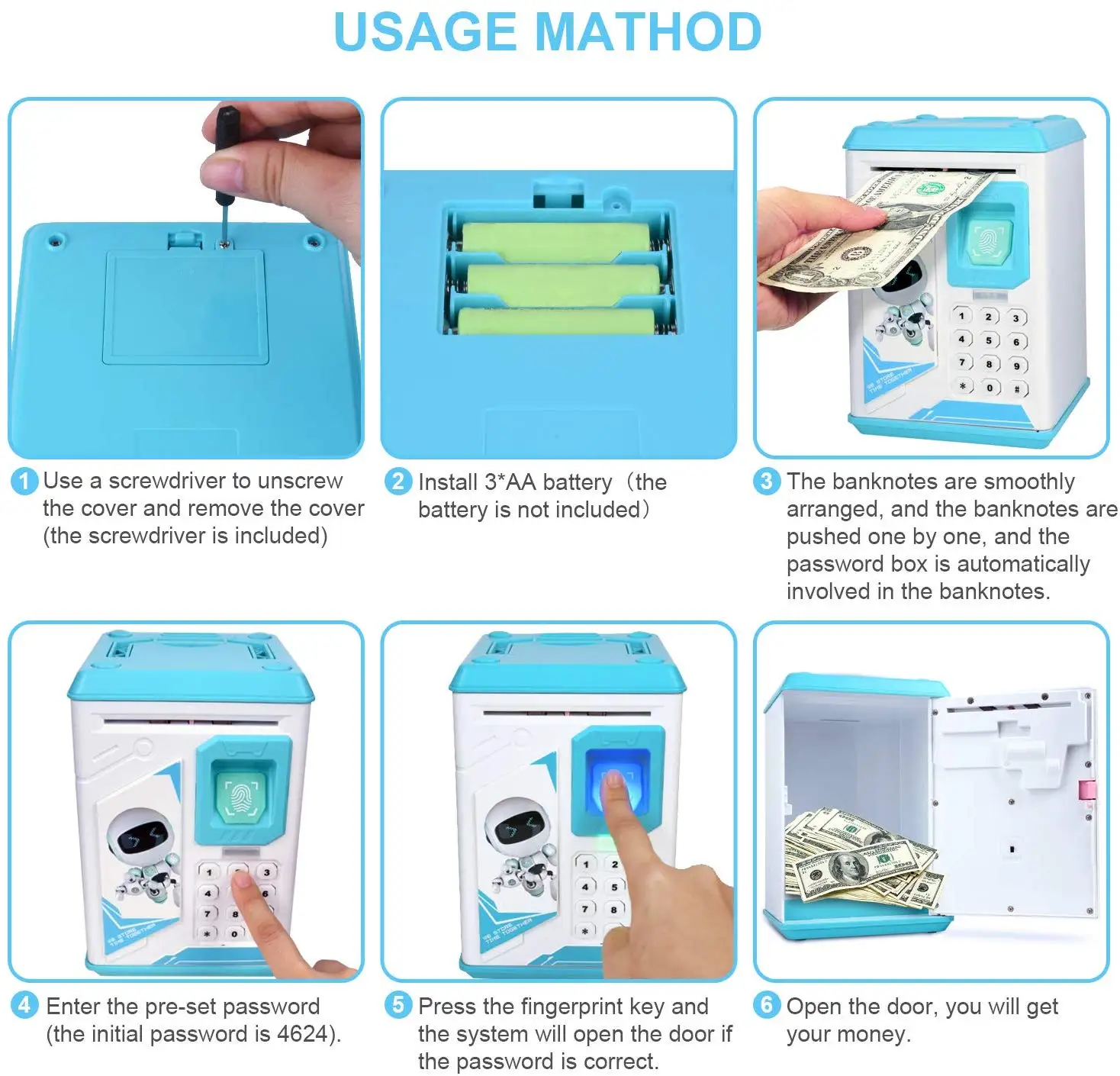 Идеально подходит для детей, развивающих привычки экономии, режим ATM и пароль, отпечаток пальца, очень веселится.