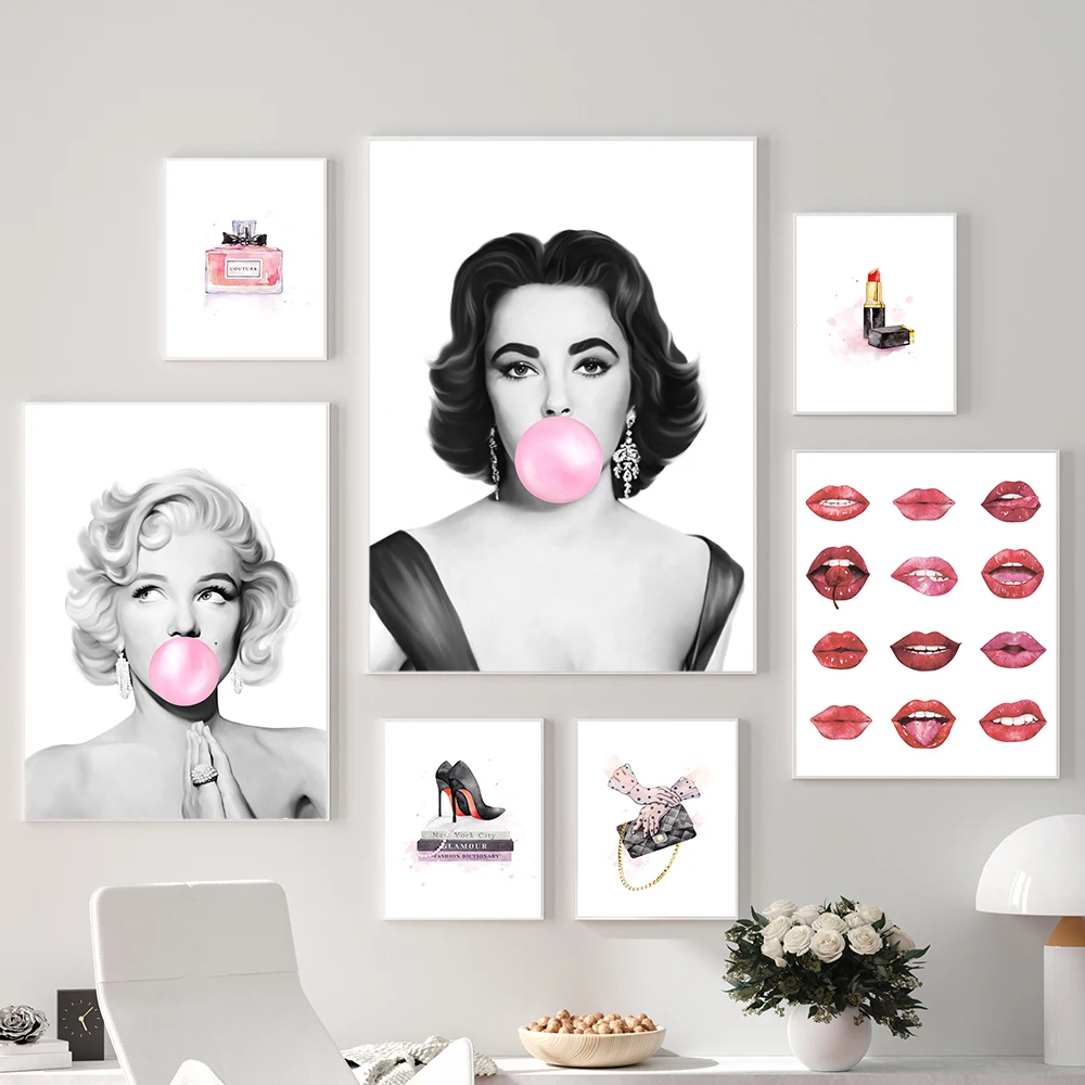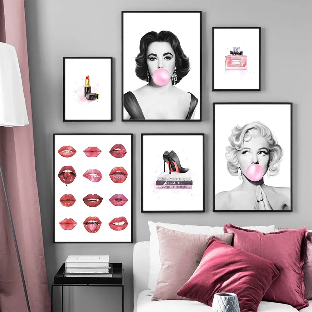 Картины Элизабет Тейлор баббблжэм макияж настенный художественный постер Монро помада на высоких каблуках Печать холст для девушек гардеробная комната Домашний декор