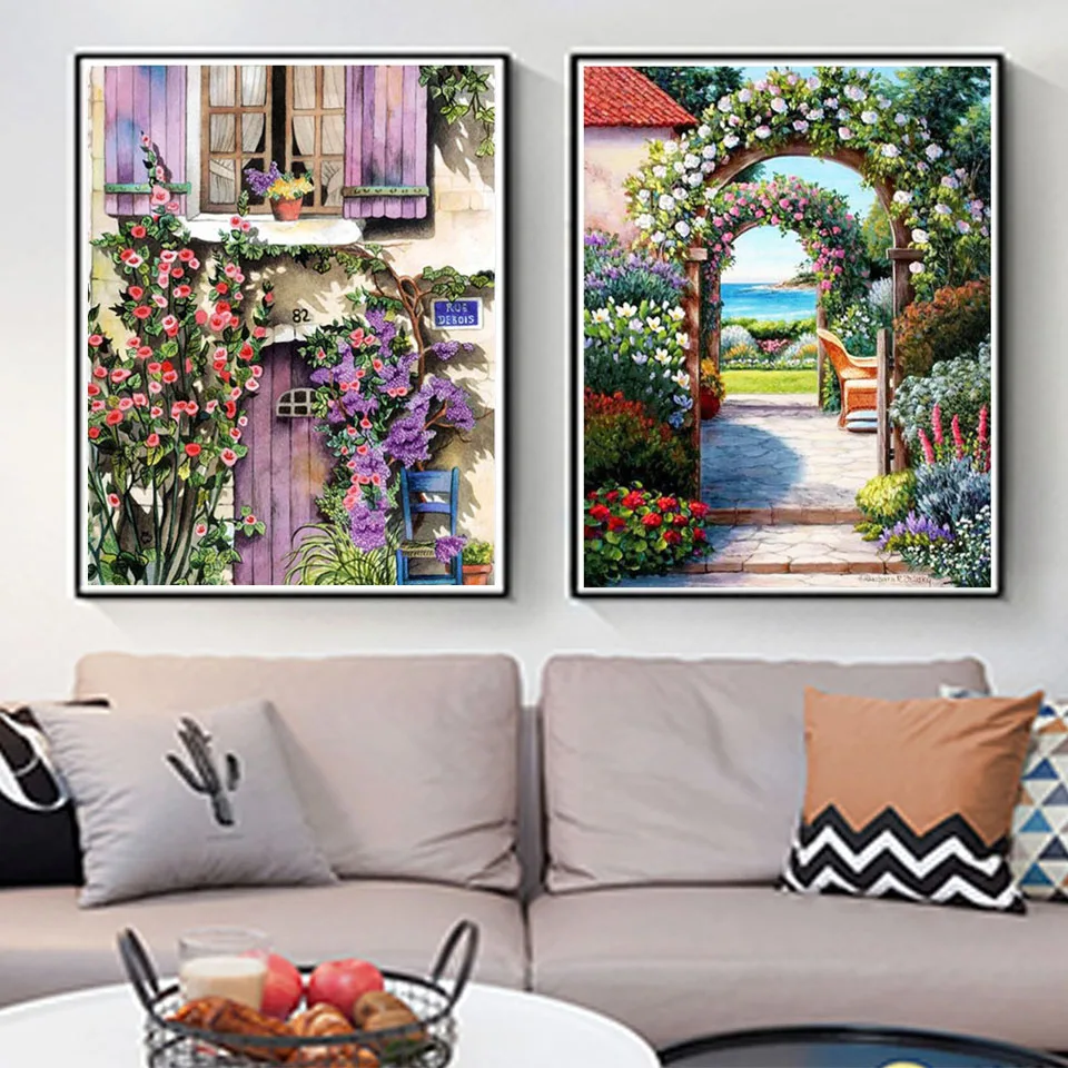 Алмазная 5D живопись сделай сам, Набор для вышивки сада, ландшафта, арки, полноразмернаяКруглая Мозаика, искусство, украшение для дома, подарок
