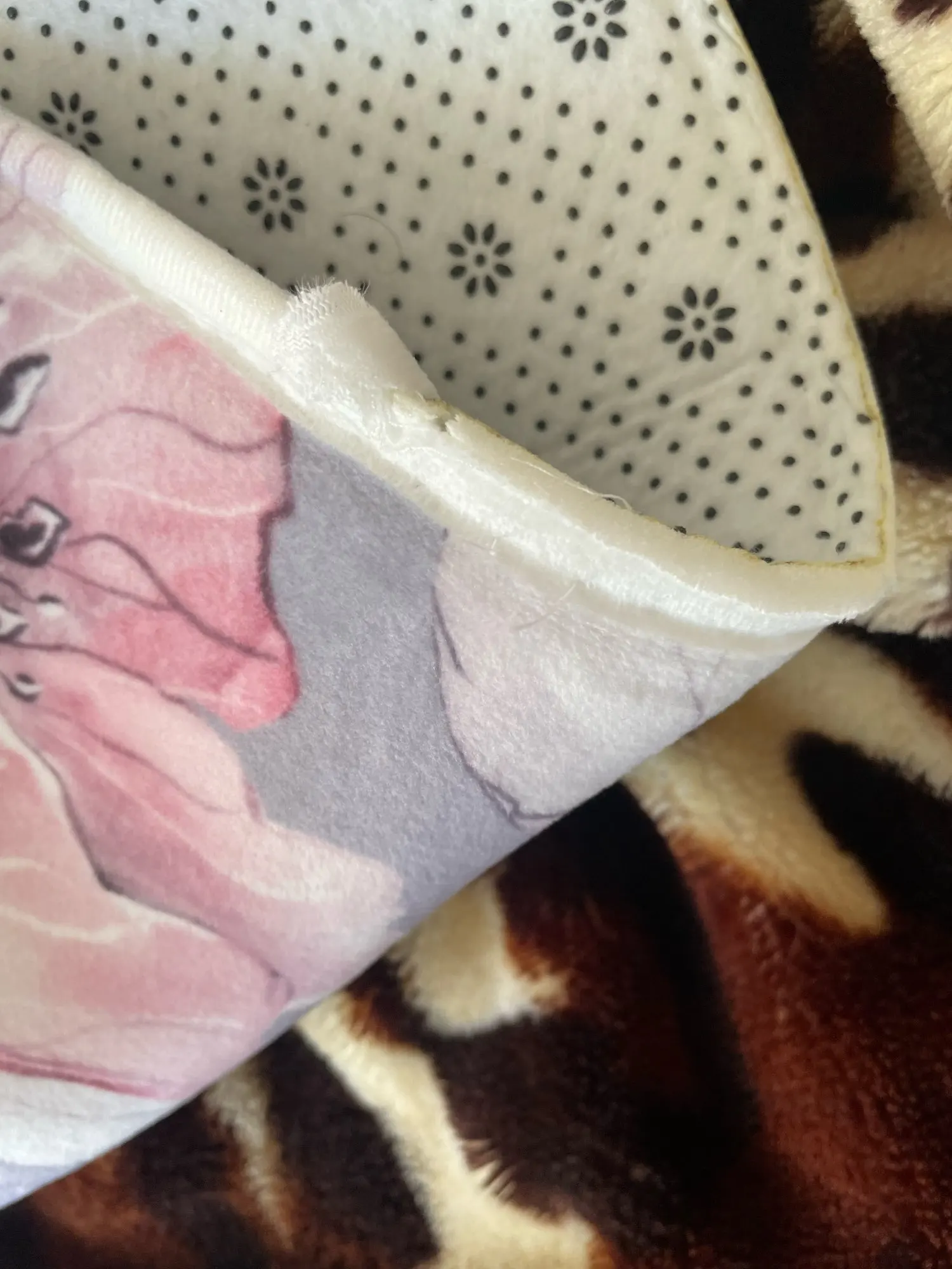 -Мягкие и удобные. -Сетка из ПВХ, Нетоксичная, без запаха, не заплесневелая. -Легко впитывает воду и пыль, хорошая устойчивость к скольжению. -Противоскользящее поглощение воды, не легко уронить ворс. -Пластиковое дно в форме цветка сливы, износостойкое, не повреждает пол.