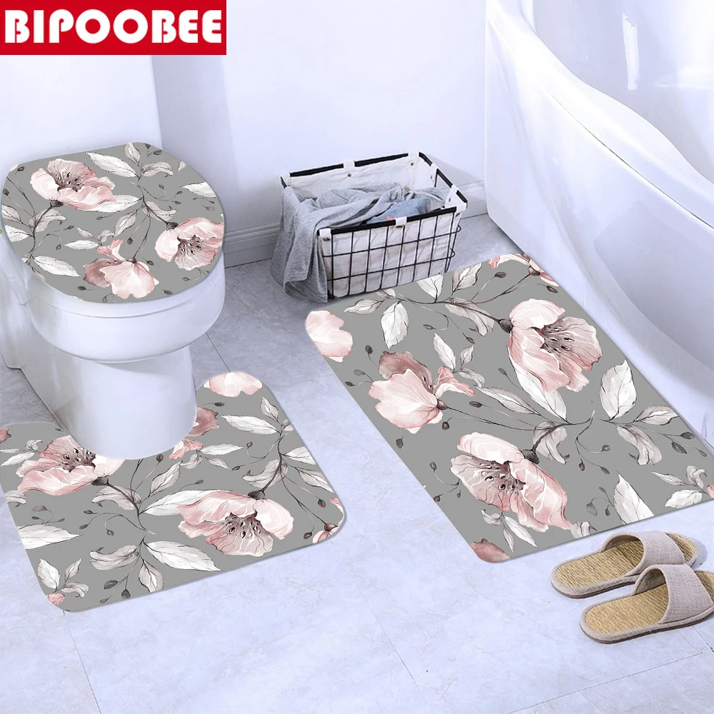 Розовая занавеска для душа с большим цветочным принтом, водонепроницаемые занавески в европейском стиле для ванной комнаты, домашний декор, Нескользящие коврики, набор ковриков для ванной