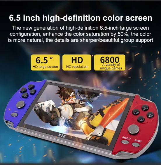 Игровая консоль X16, 6,5 дюйма, портативная, 8 ГБ, для классических ретро-видеоигр, 6800 + игр, аркадных ФК-симуляторов