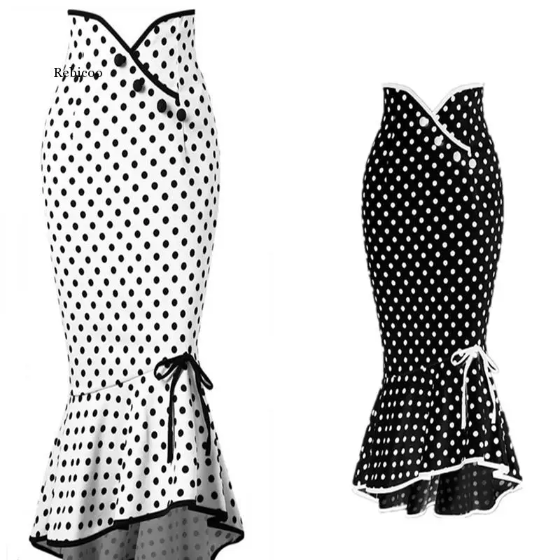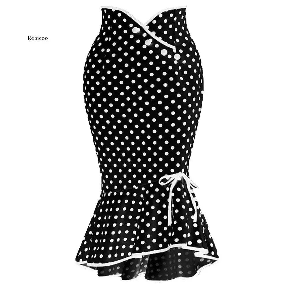 Женская юбка с завышенной талией, элегантная юбка миди в горошек, юбка-годе с принтом в Корейском стиле, лето 2021