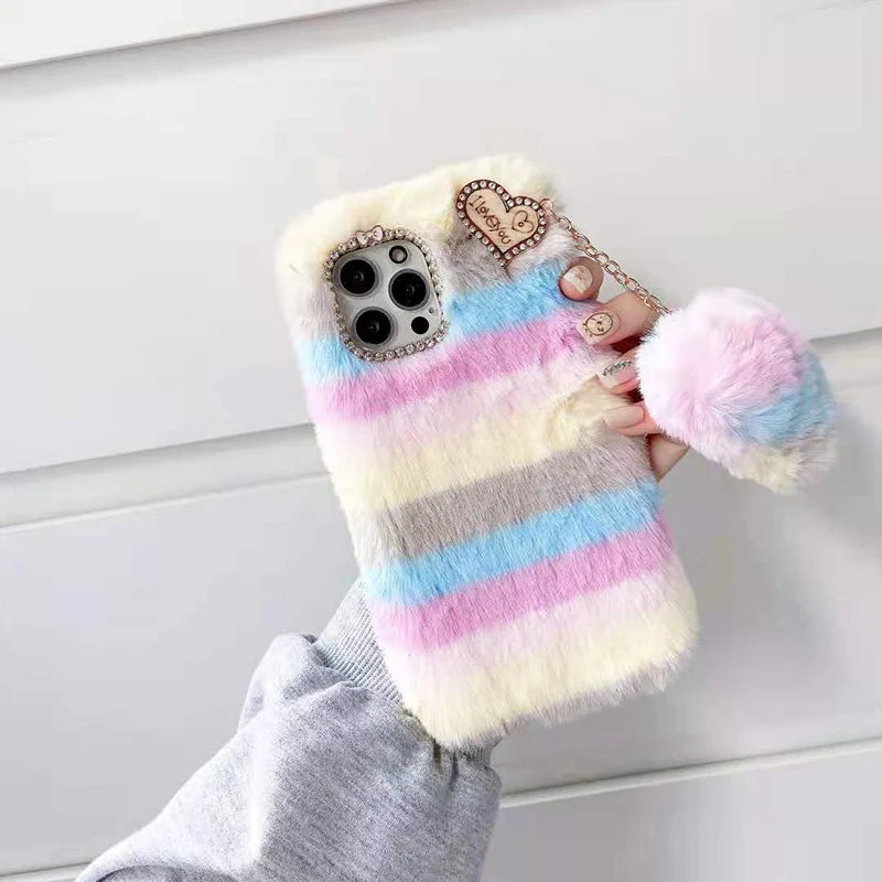 Feature 13D Cute Luxury Warm Fur Plush diamond Phone Case