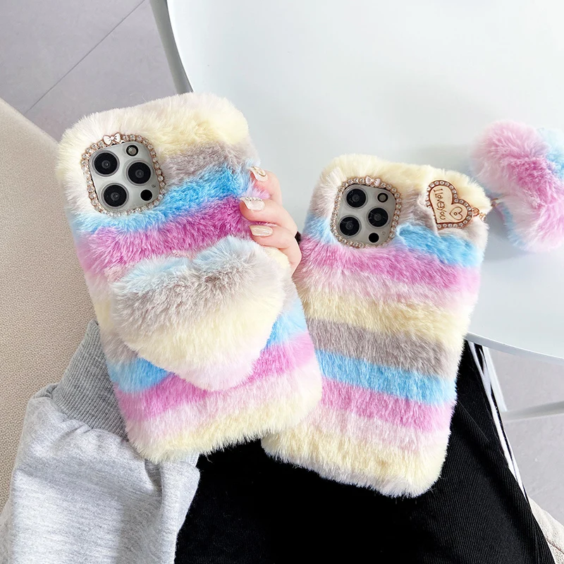 3D милый пушистый плюшевый мягкий меховой Радужный чехол для телефо...