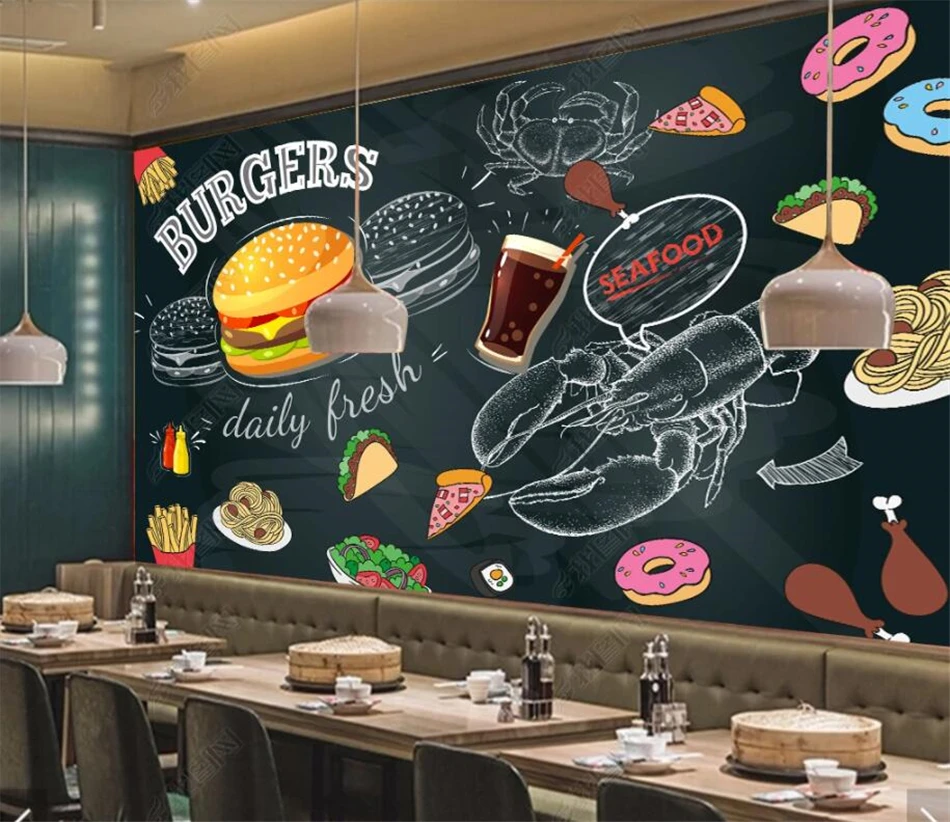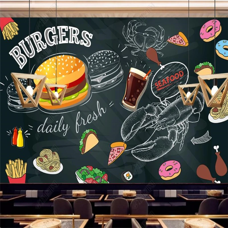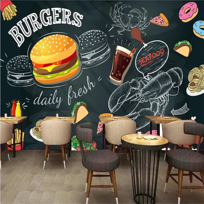 Современные ресторанные обои с гамбургерами, 3D доска, ручная роспи...