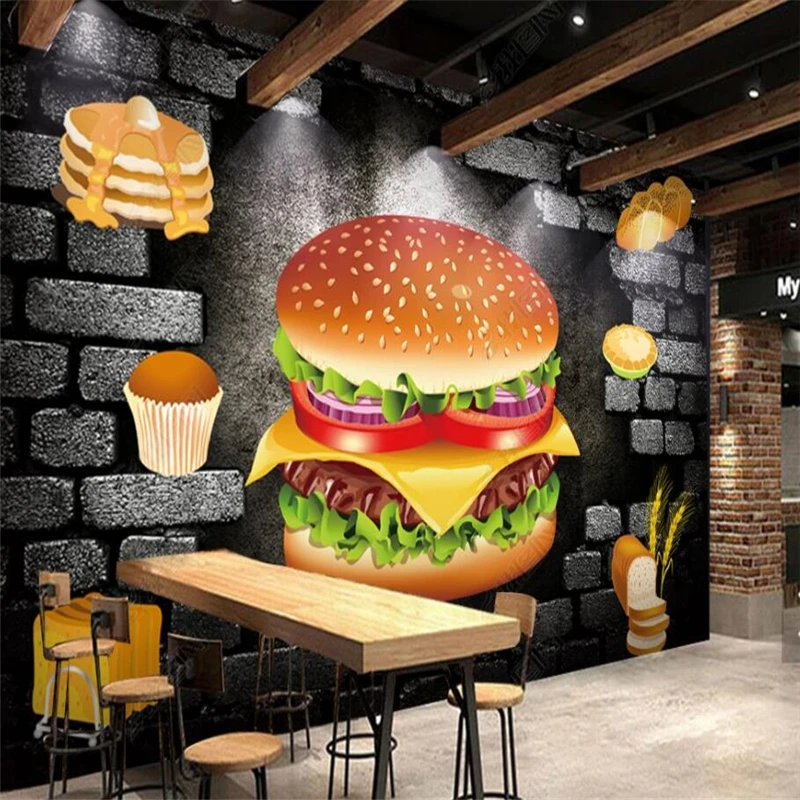 3D стерео кирпичная стена черный бургер фон обои пекарня Фастфуд Ресторан оснастка фон Настенная Обои