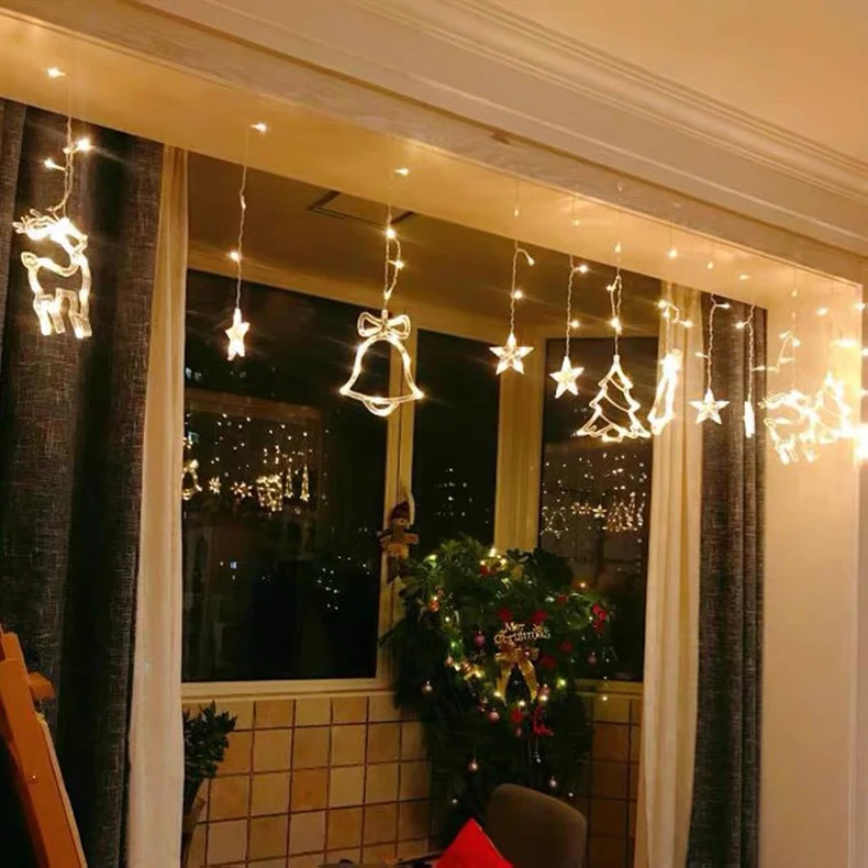 Светодиодная лампа-занавеска, Рождественская гирлянда для ЕС, США, ...