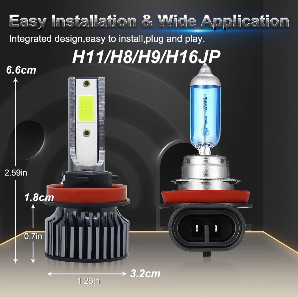 Новинка 2 шт. мини COB автомобилей головной светильник H4 H7 светодиодный 3000K 6500K 8000K H1 H3 H8 H9 H11 9005 9006 HB3 HB4 880 881 лампы автомобильная Противо-Туманная светильник