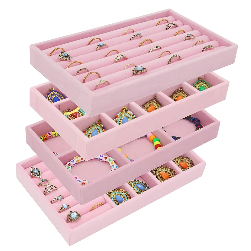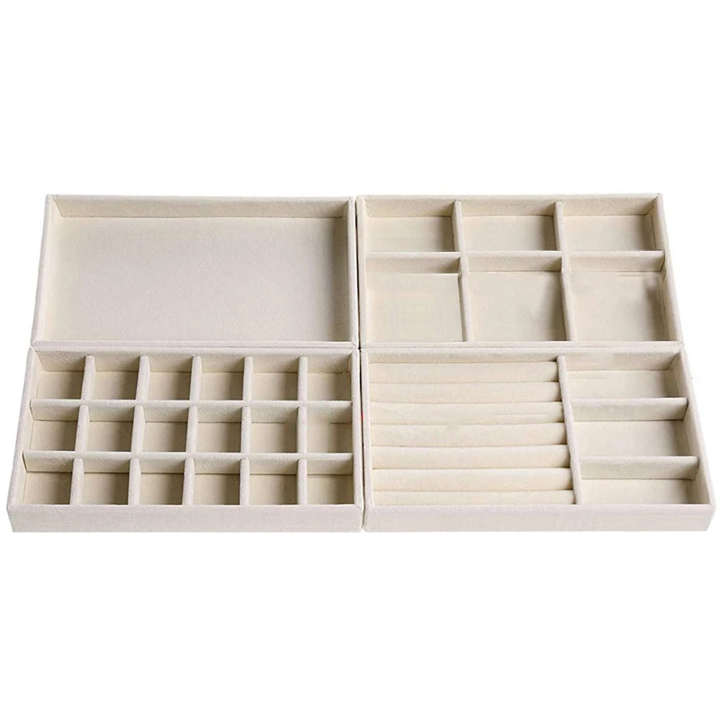 4 шт.лот органайзер для ювелирных изделий бархат ювелирные изделия лоток для хранения Дисплей кольцо браслет ожерелье коробка для хранения