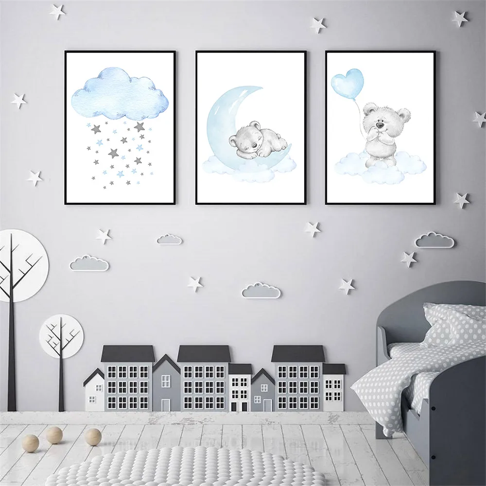 Картины на холсте с изображением животных, дневника, голубой луны, облака, детская Настенная картина, скандинавские настенные картины для декора детской комнаты