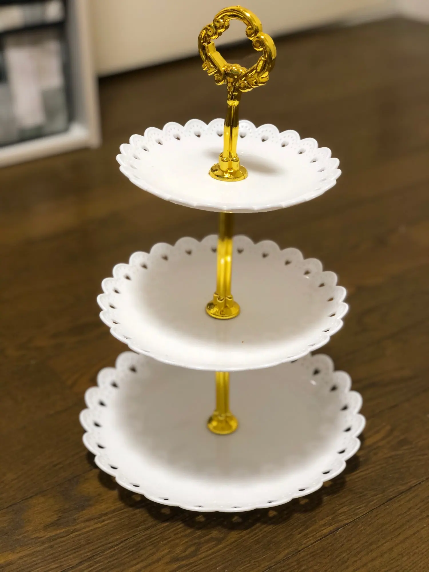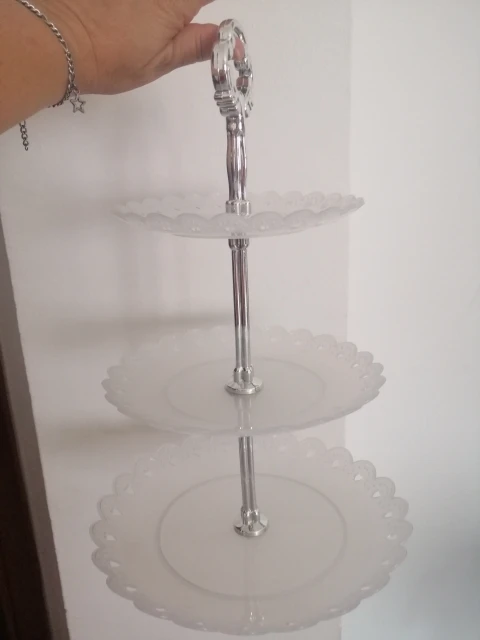 Быстрая доставка. Высококачественный поднос для торта, как показано на картинке. Было очень легко собрать, и башня была завершена в кратчайшие сроки. Целью было украшение торта, но после его использования я хотел бы украсить его в декоративных целях. Спасибо продавцу за отличный товар!