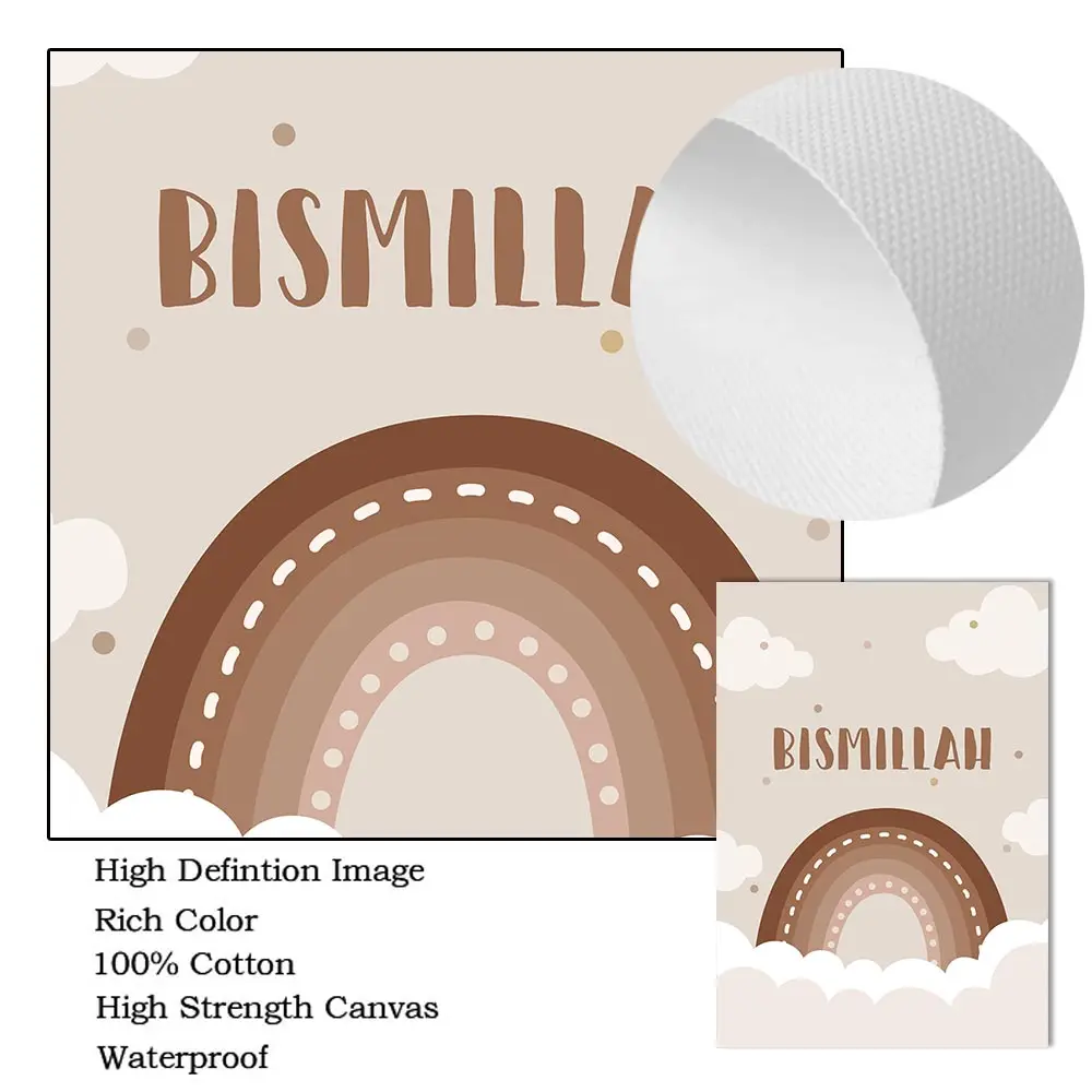 Мусульманские постеры для детской комнаты Bismillah, Картина на холсте, облака, луна, радуга, Настенная печать, детский постер, настенные картины, декор для детской комнаты