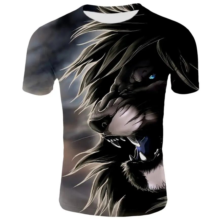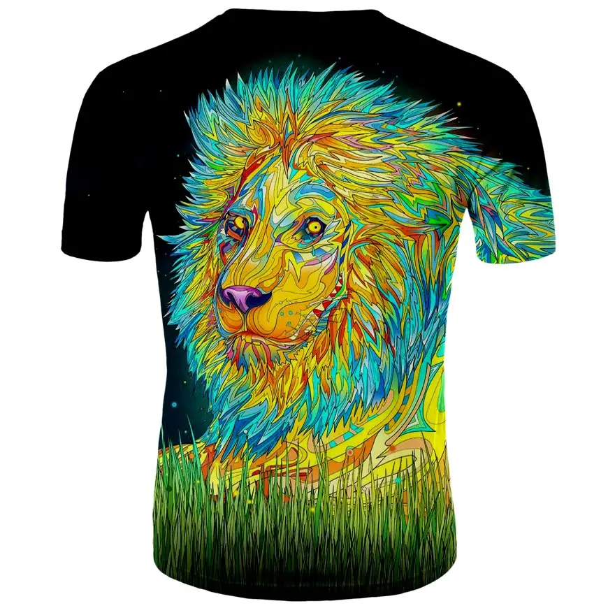 Новинка лета 2021, Мужская модная футболка с 3D принтом льва, футболка в стиле Харадзюку с коротким рукавом, Повседневная Уличная одежда, модный топ