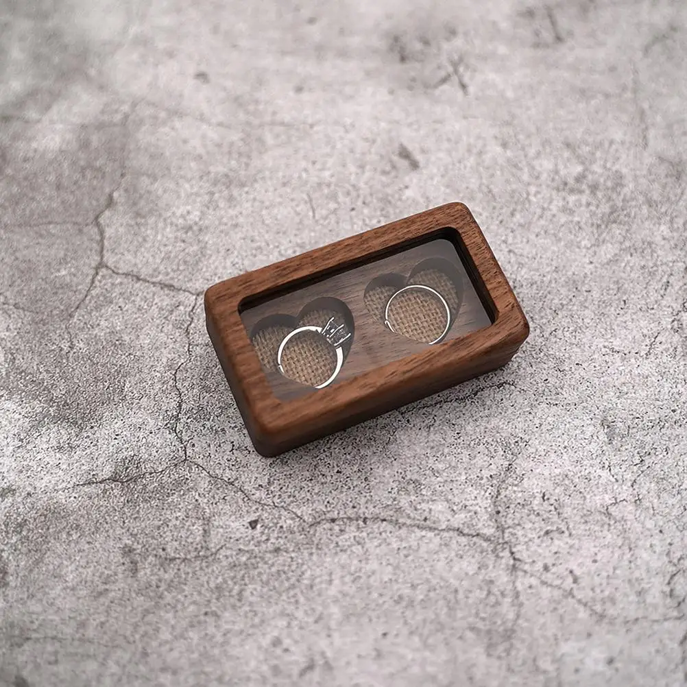 Деревянная шкатулка для обручального кольца на предъявителя, подушка для колец, мешковина, деревенский подарок, держатель для свадебных украшений на заказ