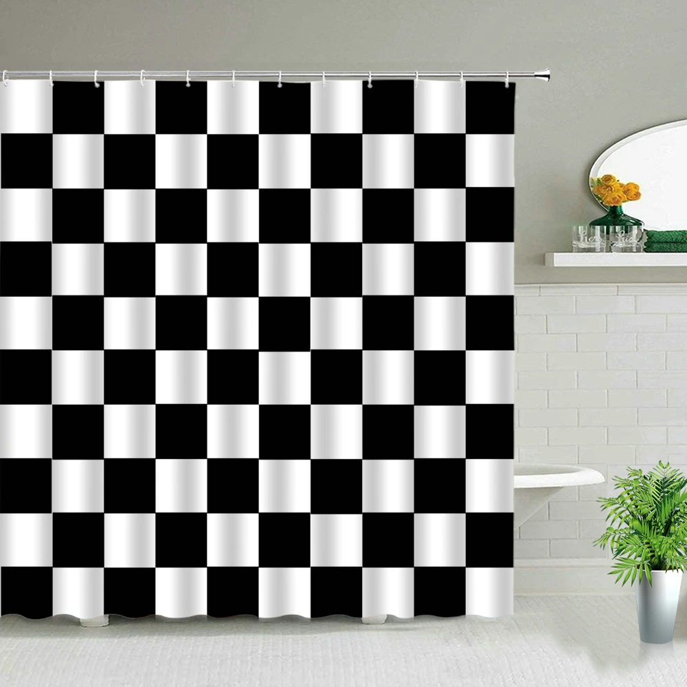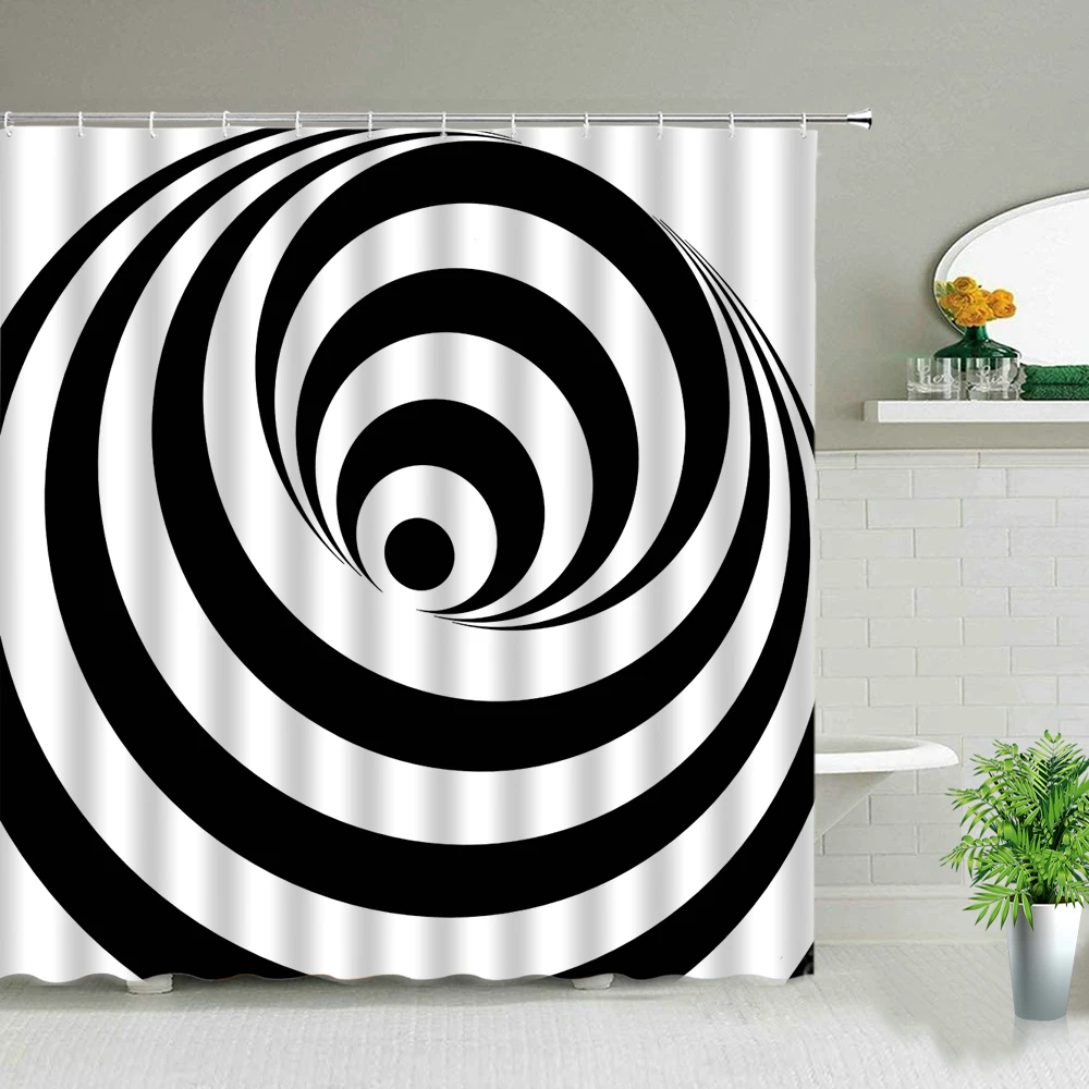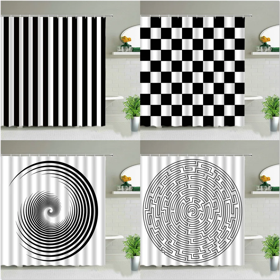 Черно-белая полосатая душевая занавеска s с геометрическим рисунком для декора ванной комнаты, водонепроницаемая тканевая занавеска для ванны с крючками, моющаяся