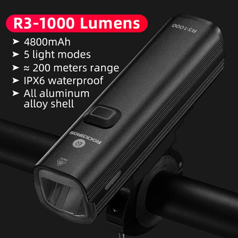 Фсветильник велосипедный ROCKBROS, 1000 лм, 4800 мАч, внешний аккумулятор