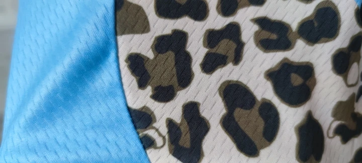 Ткань одежды изготовлена из полиэфирной сетки, которая хорошо впитывает пот и пропускает воздух, и в то же время обладает высокой эластичностью и эластичностью, что делает ношение более комфортным и близким к телу. Ткань имеет охлаждающий эффект и функцию дезодоранта.