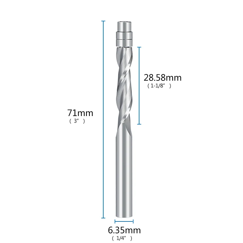 Твердосплавная Концевая фреза с 2 канавками, фреза с направляющим подшипником 6,35 мм, хвостовик вверх, фреза для деревообработки