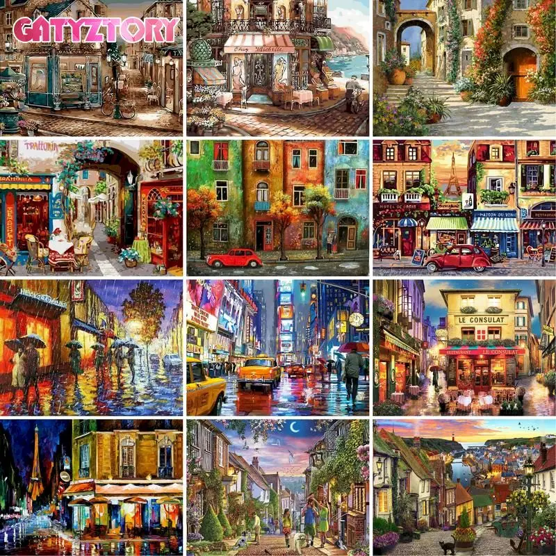 GATYZTORY Масло Набор для рисования по номерам декорации DIY Раскраска по номерам на холсте рамки 60x75cm Корпус уличные Рисование Живопись