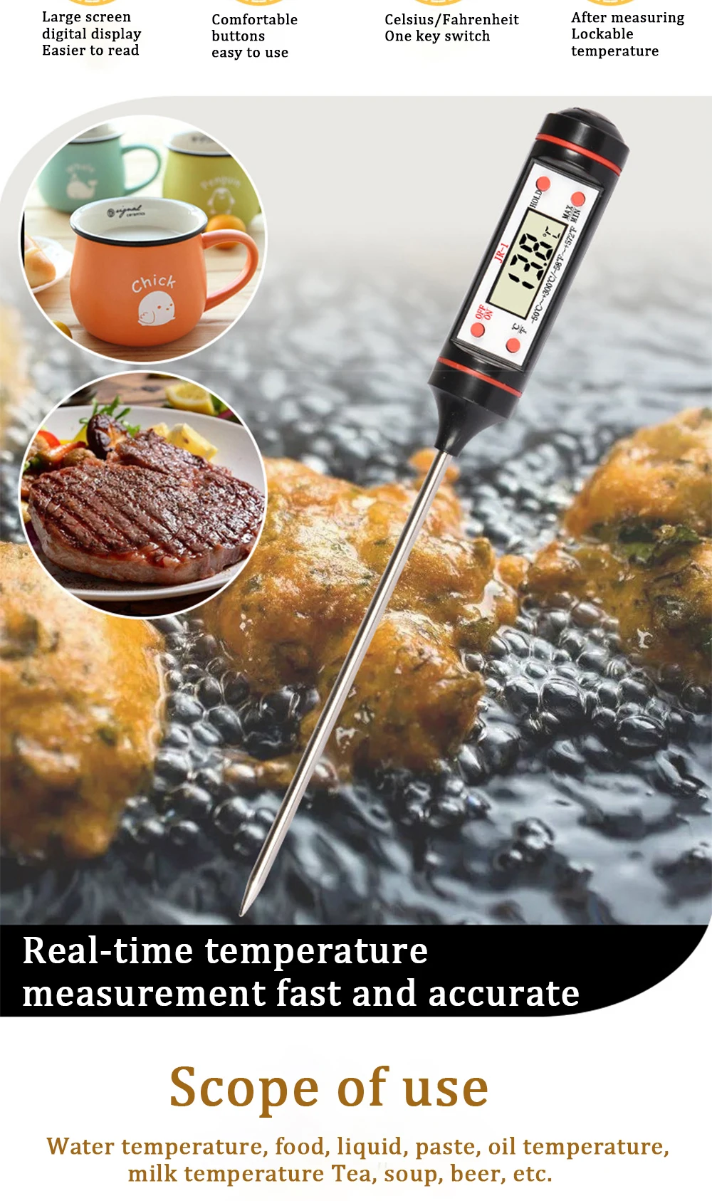 Портативный электронный зонд, кухонный цифровой термометр для барбекю, термометр в виде ручки для мяса, еды, духовки, JR-1
