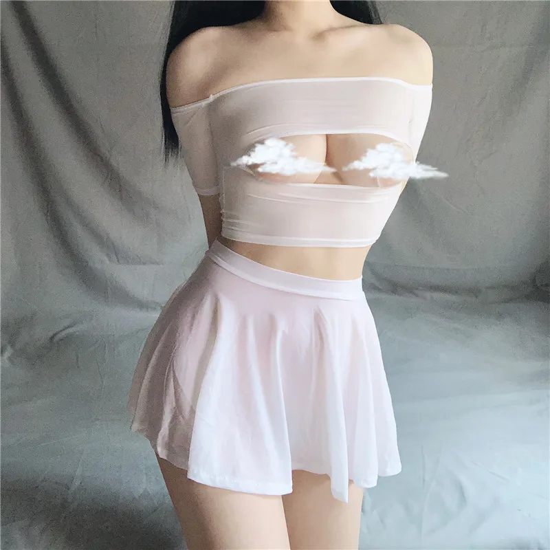 Мини-юбка Милая Горячая сексуальная Женская микро-юбка из ледяного шелка танцевальная одежда для ночного клуба Фантазийная эротическая гладкая прозрачная ночная одежда