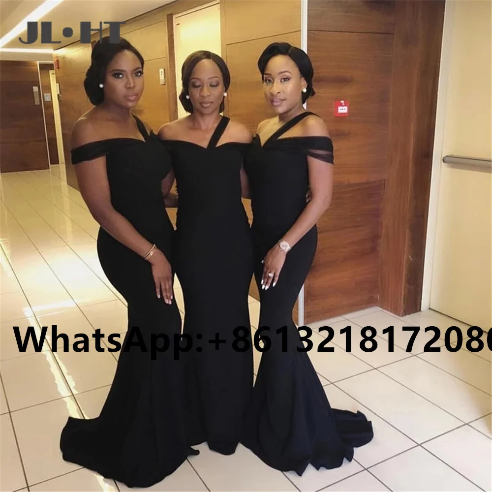 Пикантные размера плюс черного цвета для девочек, платье подружки невесты, платья 2021 Русалка Свадебная вечеринка вечернее платье со складками развертки Поезд Атласное Платье для подружки невесты, платья