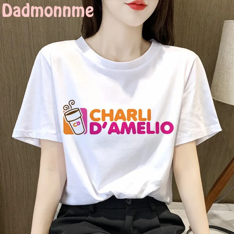Одежда Charli DAmelio с принтом ледяного кофе, топы, рубашка, летние футболки с эстетичным графическим принтом и коротким рукавом из полиэстера, женская футболка