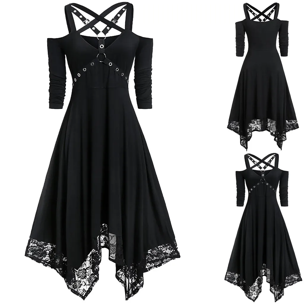 Женское платье на Хэллоуин, кружевное готическое платье с открытыми плечами и рукавами до локтя, vestidos de festa robe femme sukienki, с вырезами, размера плюс