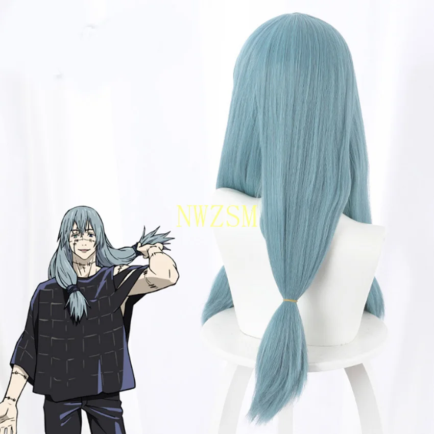 Jujutsu кайсен махито парик для косплея синий термостойкие синтетические волосы двойной костюм с тесьмой подставки под парик