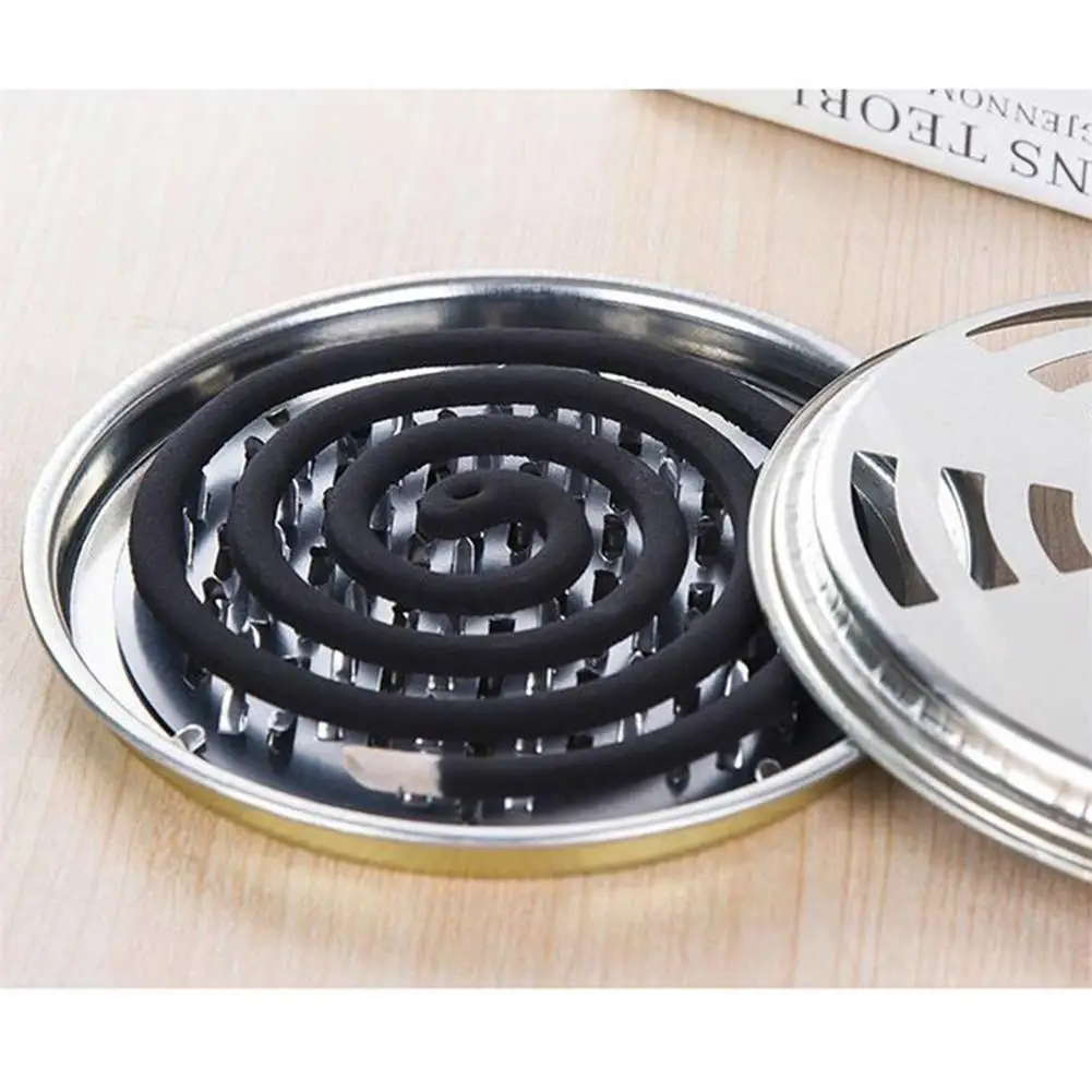 Защитная металлическая круглая подставка для комаров, спиральный лоток для благовоний, репеллентов от насекомых, комаров, пепельницы с крышкой