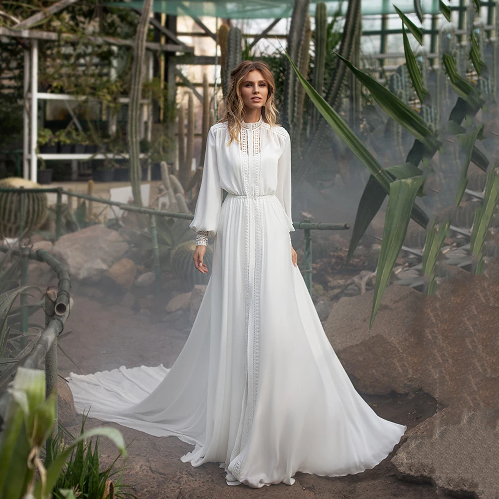 Кружевное свадебное платье с пышными рукавами, в стиле бохо