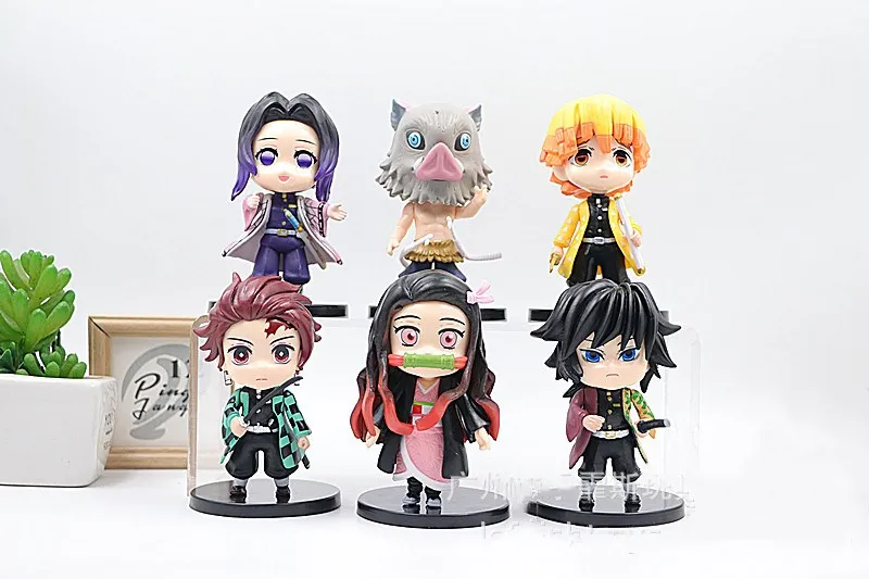 Kimetsu no Yaiba Аниме фигурки Kamado Nezuko Tanjirou Zenitsu Inosuke Giyuu ПВХ игрушки Подарочная Рождественская Кукла демон убийца фигурки
