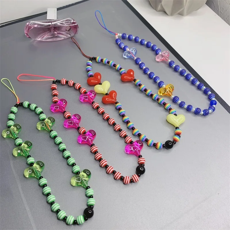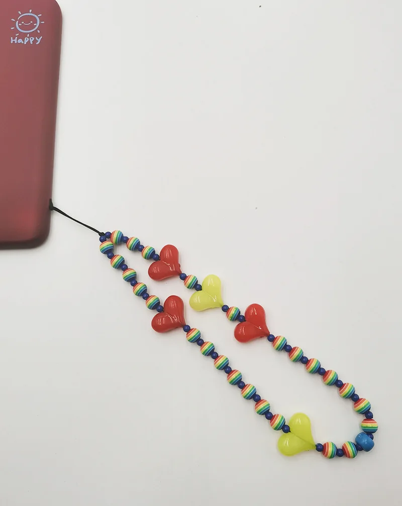 Новые Красочные акриловые бусины в форме сердца планшетов ремешок для телефона ремешок для защиты от потери для женщин летние аксессуары