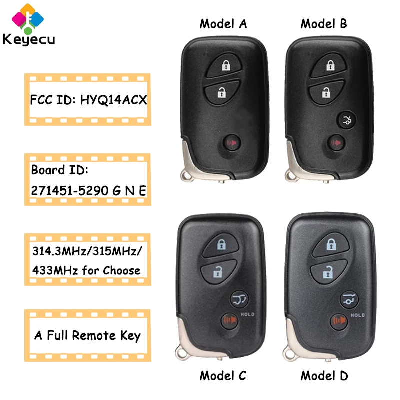 KEYECU умный дистанционный Автомобильный ключ с 3 4 кнопками-FOB для Lexus RX350 RX450h GX460 CT200h FCC ID: HYQ14ACX плата: 271451-5290G N E