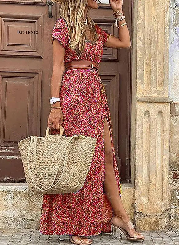 Женское летнее пляжное платье макси 2021, длинные шифоновые платья ...
