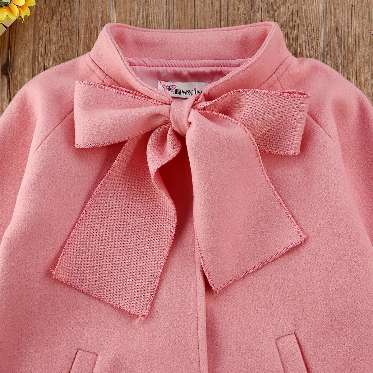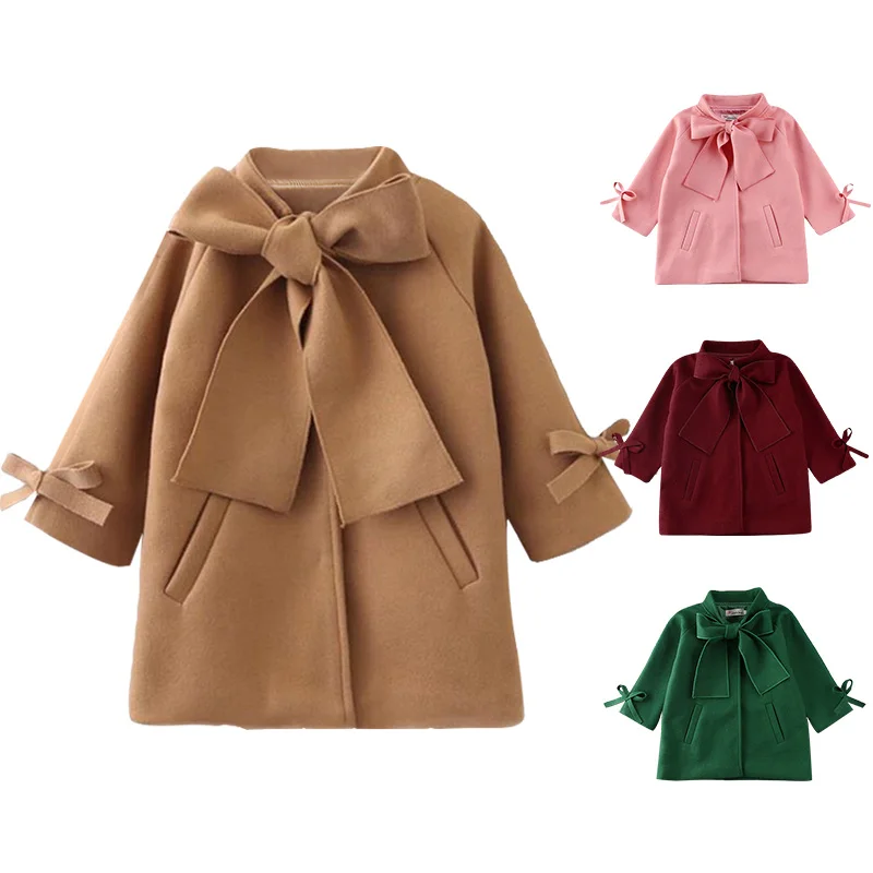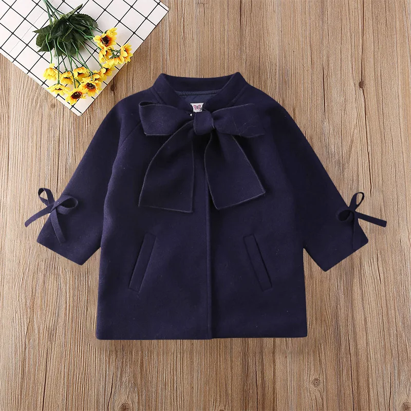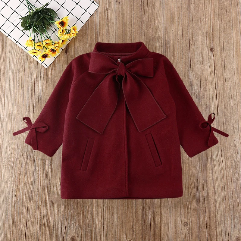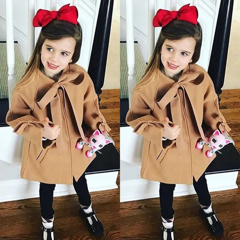 Куртка для маленьких девочек, осенне-зимнее шерстяное пальто, куртка для маленьких девочек, теплая шерстяная модная ветровка с бантом, ветровка, пальто для девочек