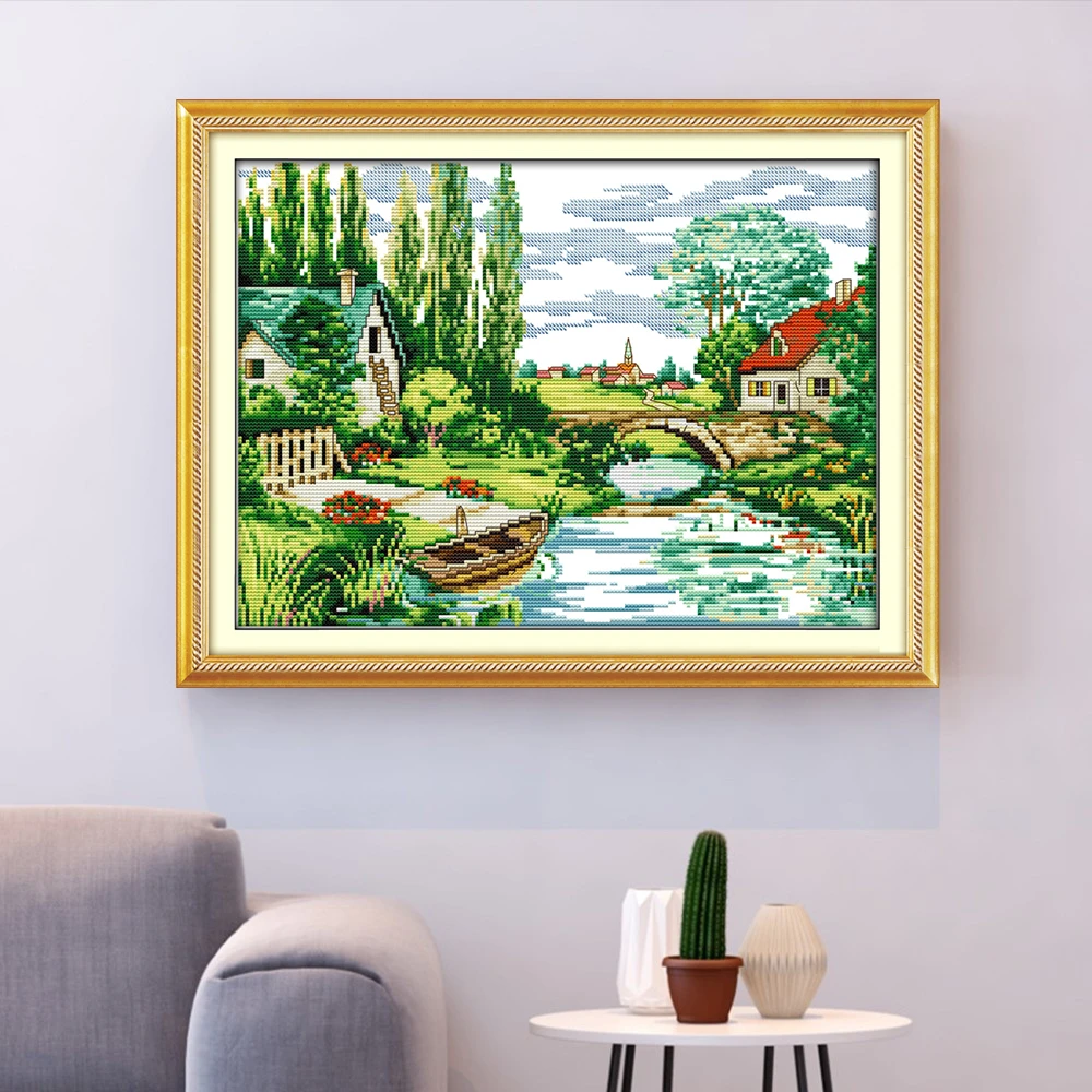 Хуакан крест вышивка дом набор декорации рукоделие вышивка озеро на...