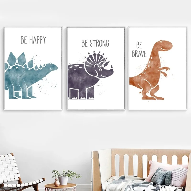 Милый динозавр, мультфильм, животные, постеры и принты для детской комнаты, современное искусство, холст, живопись, настенные картины, украшение для детской комнаты
