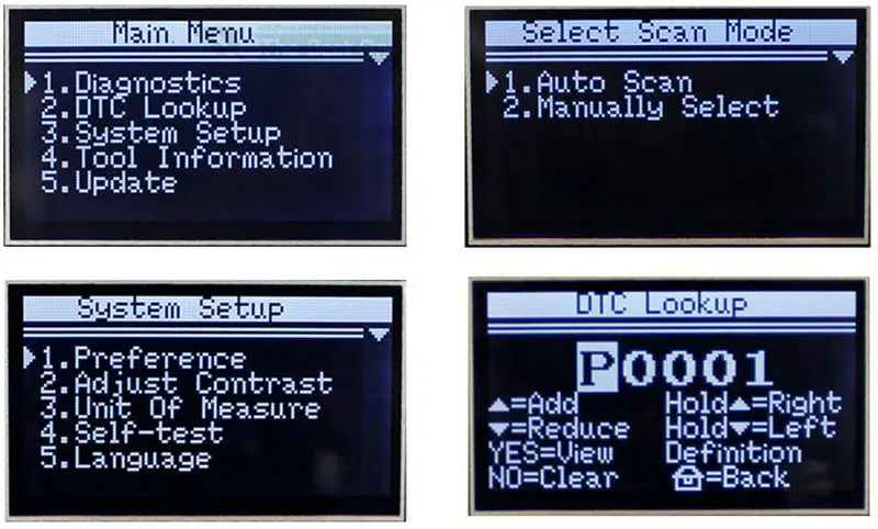 Многоязычный пользовательский интерфейс, поддерживает до 13 языковСлой приложения полностью соответствует ISO 15031 и соответствует SAE J1979.Полностью функциональный режим $01 ~ Режим $09.Поддерживает большое количество автомобилей, изготовленных 70 производителями.DTC включает общие (P0, P2, P3, B0, U0 и C0) и специфические для производителя (P1, P3, B1,B2 ,U1 и C1,C2,) коды.Детальная DTC Библиотека: DTCs объяснены легко понять слова, а не неясные jargons. Информация о помощи онлайн доступна для 80% всех DTCs, что показывает возможную причину кода.