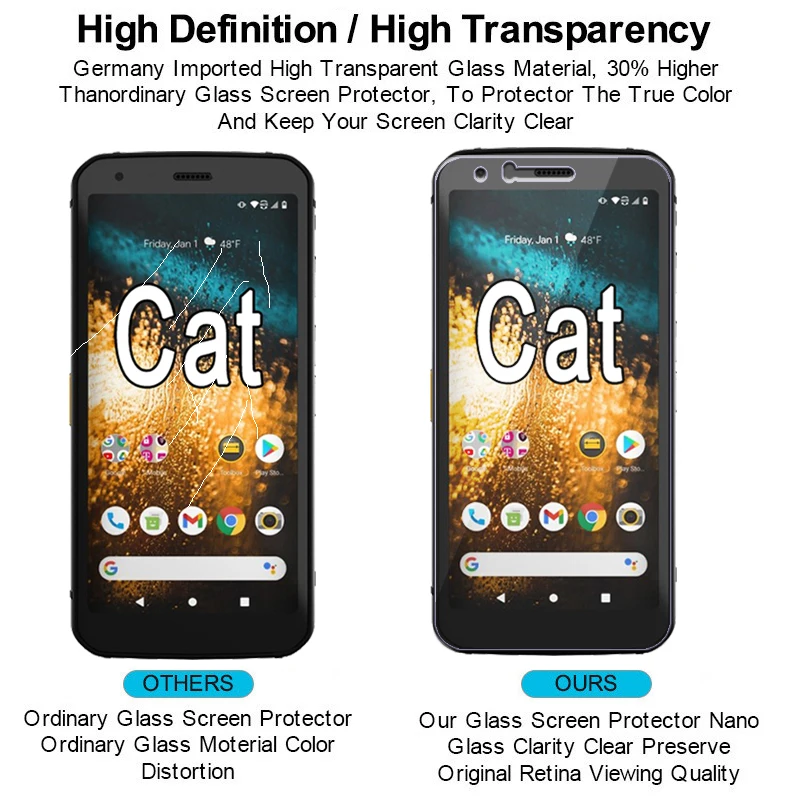 2 шт для Cat S62 Pro стеклянная Защитная пленка для экрана ЖК-экрана на Cat S62 S52 закаленное стеклоУпаковка достаточно безопасна! Лучшая цена! Вам они понравятся!>Мы стремимся к; Каждый предмет проверен перед отправкой снова; Использовать хорошую упаковку; Обеспечить лучший сервис!Описание товара:Эта защитная пленка из закаленного стекла незаменима для тех, кто склонен к постоянному падению телефона.После установки он защищает экран телефона от потертостей, царапин, трещин и воды.Характеристики>-Твердость 9HСупер жесткие, даже острые предметы, такие как ножи и ключи, не царапают пленку из закаленного стекла.-Олеофобное покрытиеПредотвращает появление отпечатков пальцев и других загрязняющих веществ. Облегчает очистку.-УдаропрочныйПри поломке маленькие кусочки удерживаются в пленке. Они не более острые, что делает их гораздо безопаснее, чем другие изделия из стекла.-Идеальное сцеплениеИзготовлен из химически обработанного прозрачного закаленного стекла с силиконовым клеем, чтобы сохранить его на месте.-Отзывчивое прикосновениеПри установке чувствительности сенсорного экрана на телефонах не будет влиять.-Полная прозрачностьНе влияет на экран каким-либо образом после применения, обеспечивая полную чувствительность и видимость при прикосновении.