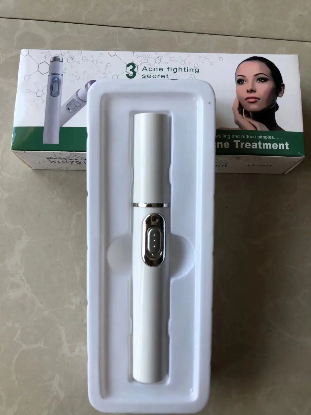 Особенности: Способствует сочетанию белка и костного коллагена, активирует кожу, подтягивает расслабляющую кожу. Эффективно подавляет акне бациллус и улучшает красное пятно, жирную кожу и тяжелую чувствительную кожу, очищает поры, удаляет акне. Используя специфический 415 нм Синий свет в видимом свете, чтобы убить бактерии в коже и порах. Стабильность 42 градуса тепла и био микро электрический ток может эффективно уменьшить жир прыщей, так что для ускорения естественных штампов прыщей. Рассыпчатое подтягивание кожи, сужение пор, устранение акне бактерий, это отлично влияет на жирную кожу, тяжелую аллергическую кожу и красные пятна. Описание: Модель: KD-7910 Напряжение: 1,5 В постоянного тока • Сила тока: 036A Мощность: 0,9 W Киоски: 1 файл Батарея: 1 * AA батарея (не входит в комплект) Спецификация: Цвет: белый Материал: АБС-пластик Размер товара: около 135*19*19 мм Пакет включает в себя: 1x акне лазерная ручка