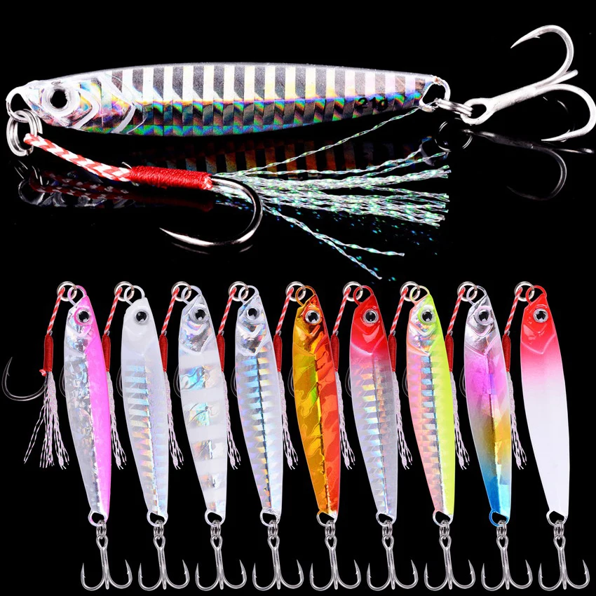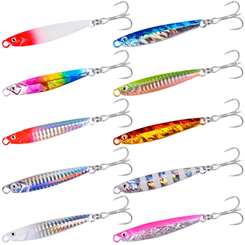 10 шт.лот светящаяся рыболовная приманка для джиггинга 7 г-40 г, маленькие металлические приманки для заброса берега, рыболовные приманки, набор для морской воды, Тонущая приманка-ложка